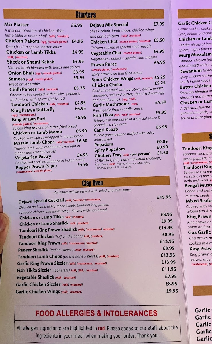 At De Ja Vu Restaurant, located at 19 High Street Cheshunt, the menu offers a delightful mix of traditional and innovative dishes, ensuring that there’s something for everyone. The Papadom & Chutneys section is a great start, offering Plain Papadom and Spicy Papadom alongside accompaniments like Mango Chutney and Mixed Pickle to stimulate your taste buds.
