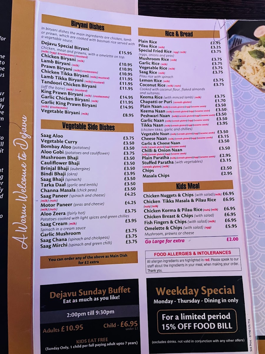 The Dejavu Speciality section introduces even more enticing options with dishes like the Murg Mussalam and the Xacuti Murgh, offering rich, flavorful experiences. Signature dishes like South Indian Garlic Chicken and Sylhety Chicken Jalfrezi are bursting with flavor, perfect for those seeking something a bit different.